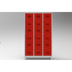 Dokuzlu soyunma dolabının ayakları üç büküm ile kıvrılıp soyunma dolabının altına sabitlenir.