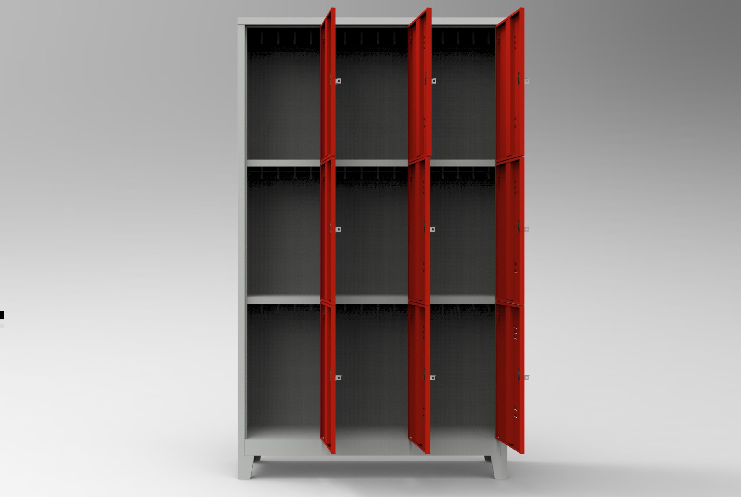 Dokuzlu soyunma dolabı; raf, cüzdan, telefon vs. koymak için çelik emanet dolabı ve cep telefonu dolabı