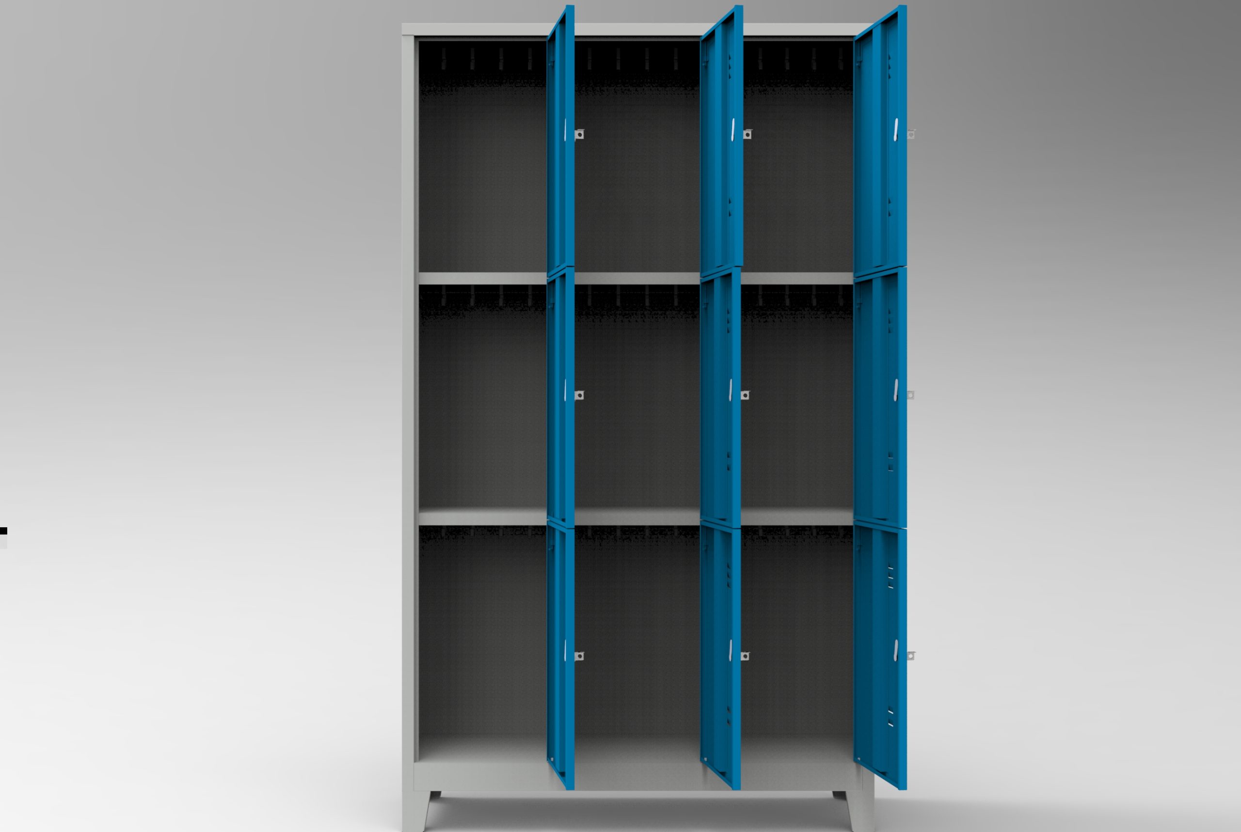 Dokuzlu soyunma dolabı; raf, cüzdan, telefon vs. koymak için çelik emanet dolabı ve cep telefonu dolabı