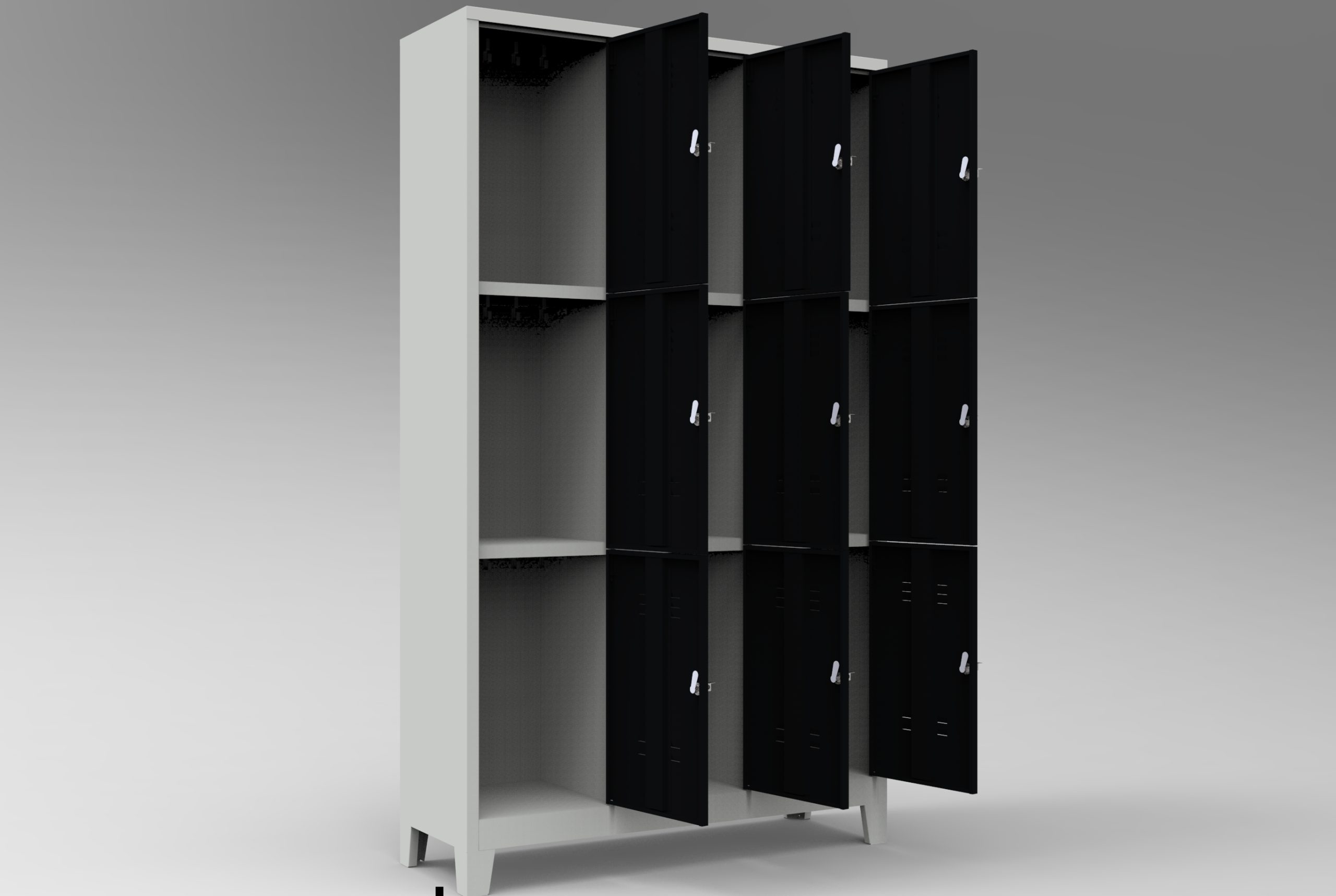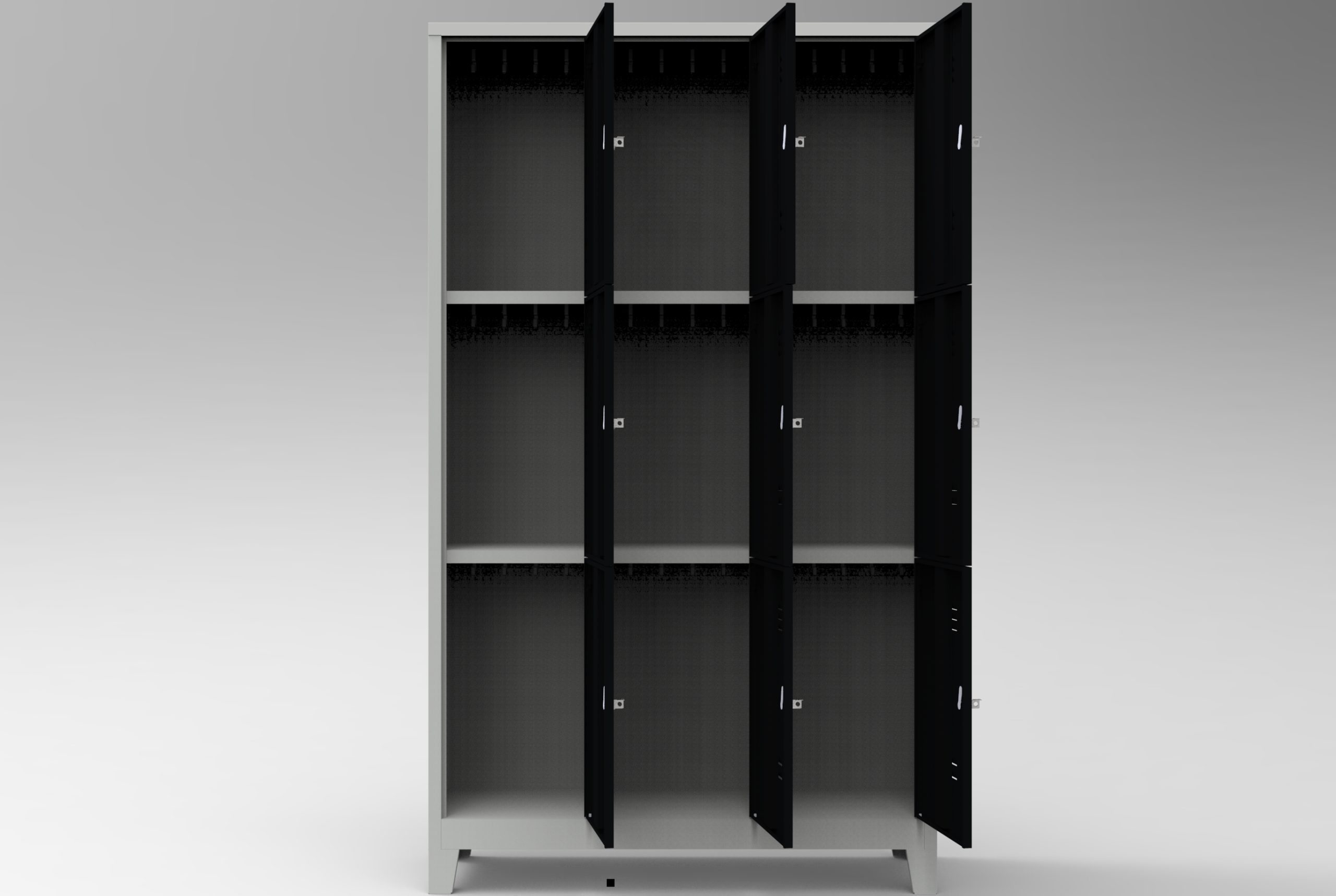 Ürün Adı : Dokuzlu Soyunma Dolabı Teknik Özellikler: H2000xW1170xD400 mm boyutlarında. Toplam ağırlık 55,00 kg. Elektrostatik toz boya. Standart RAL7035 (Gri)