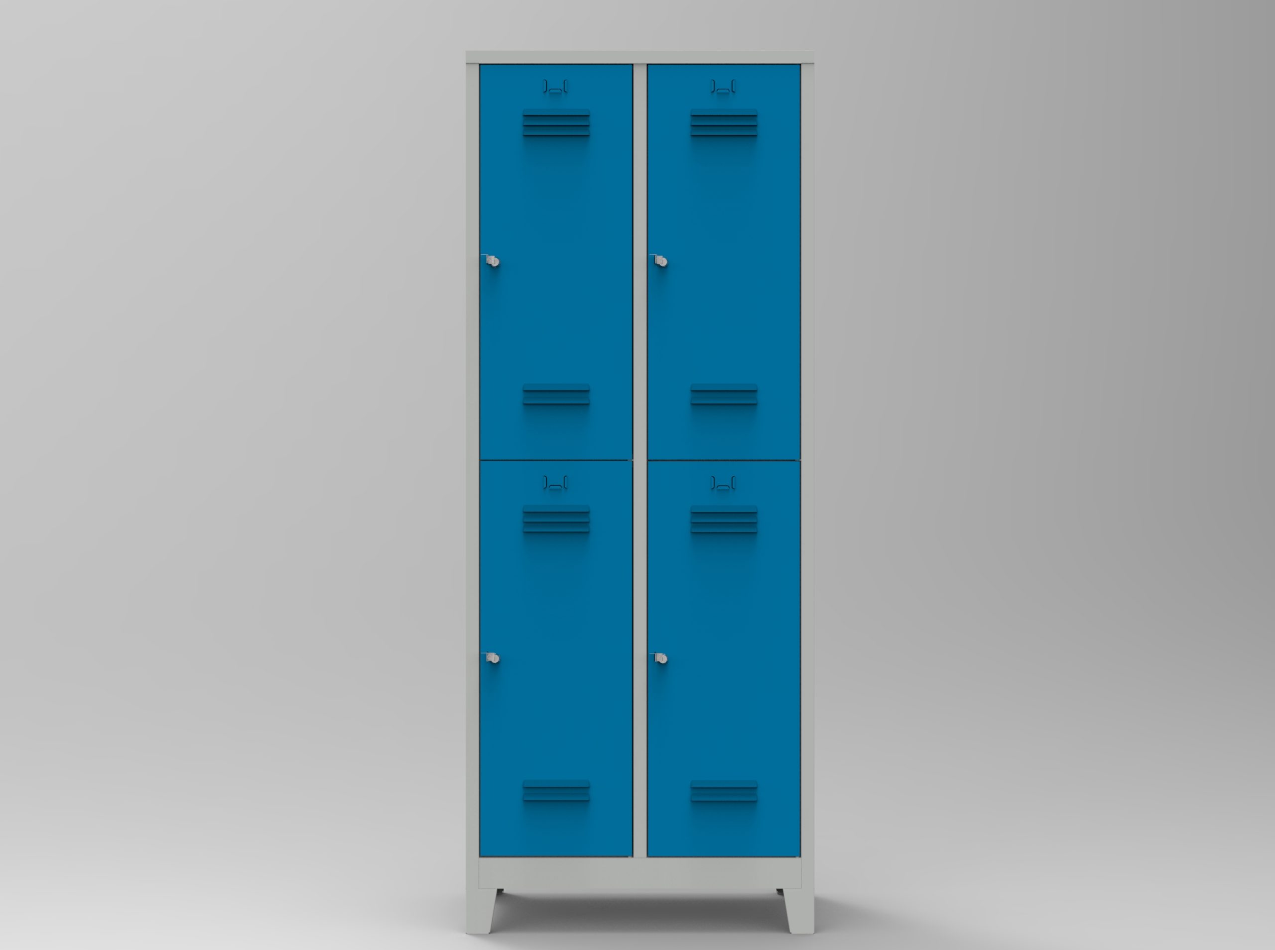 Çelik dörtlü personel soyunma dolabı, gövdesi kaynaklı ve puntalı DKP