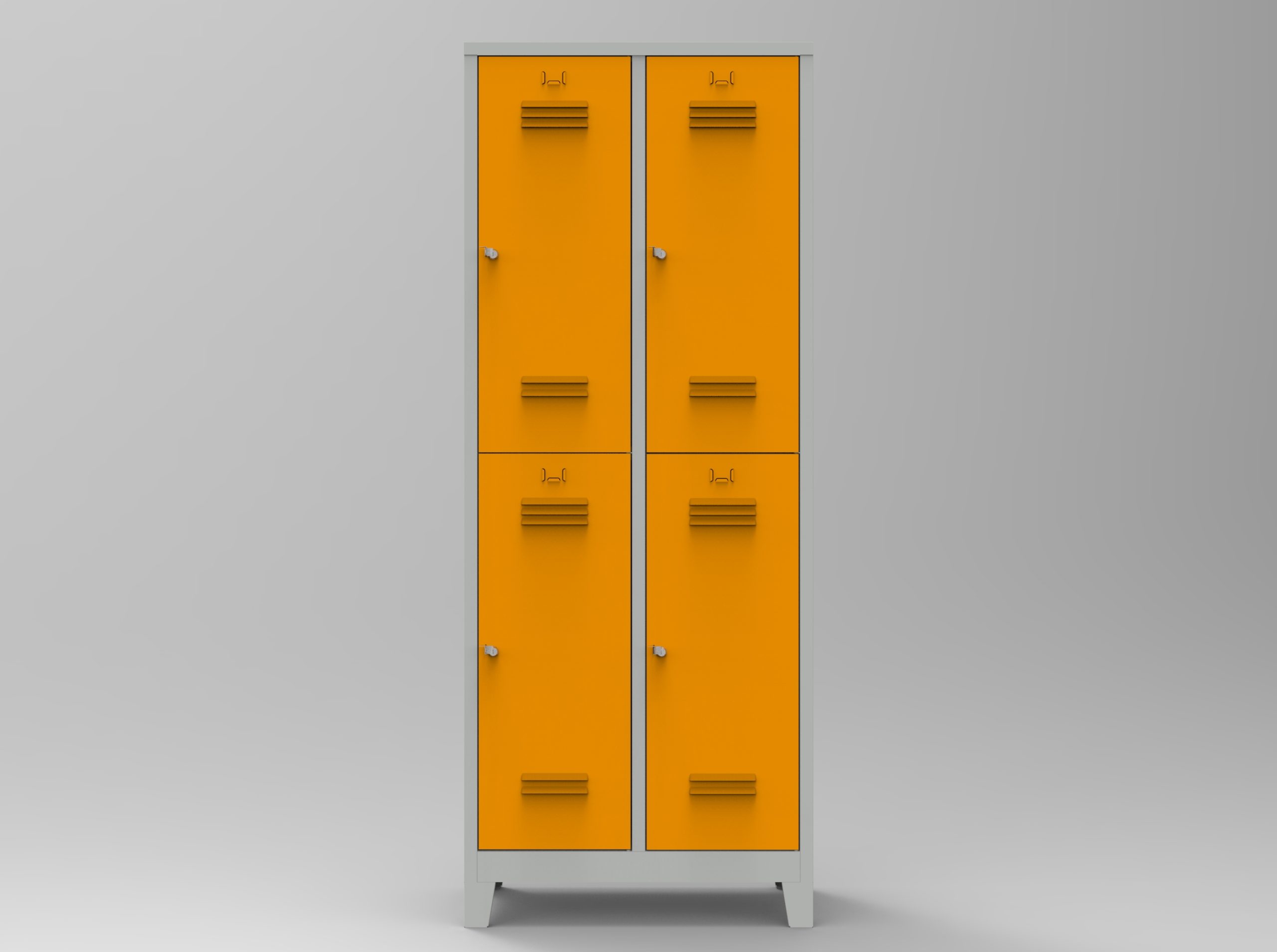 Çelik dörtlü personel soyunma dolabı, gövdesi kaynaklı ve puntalı DKP