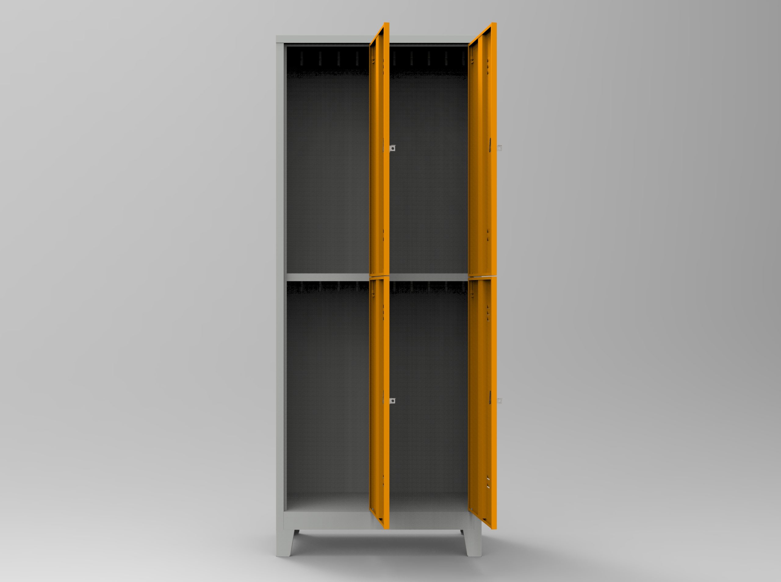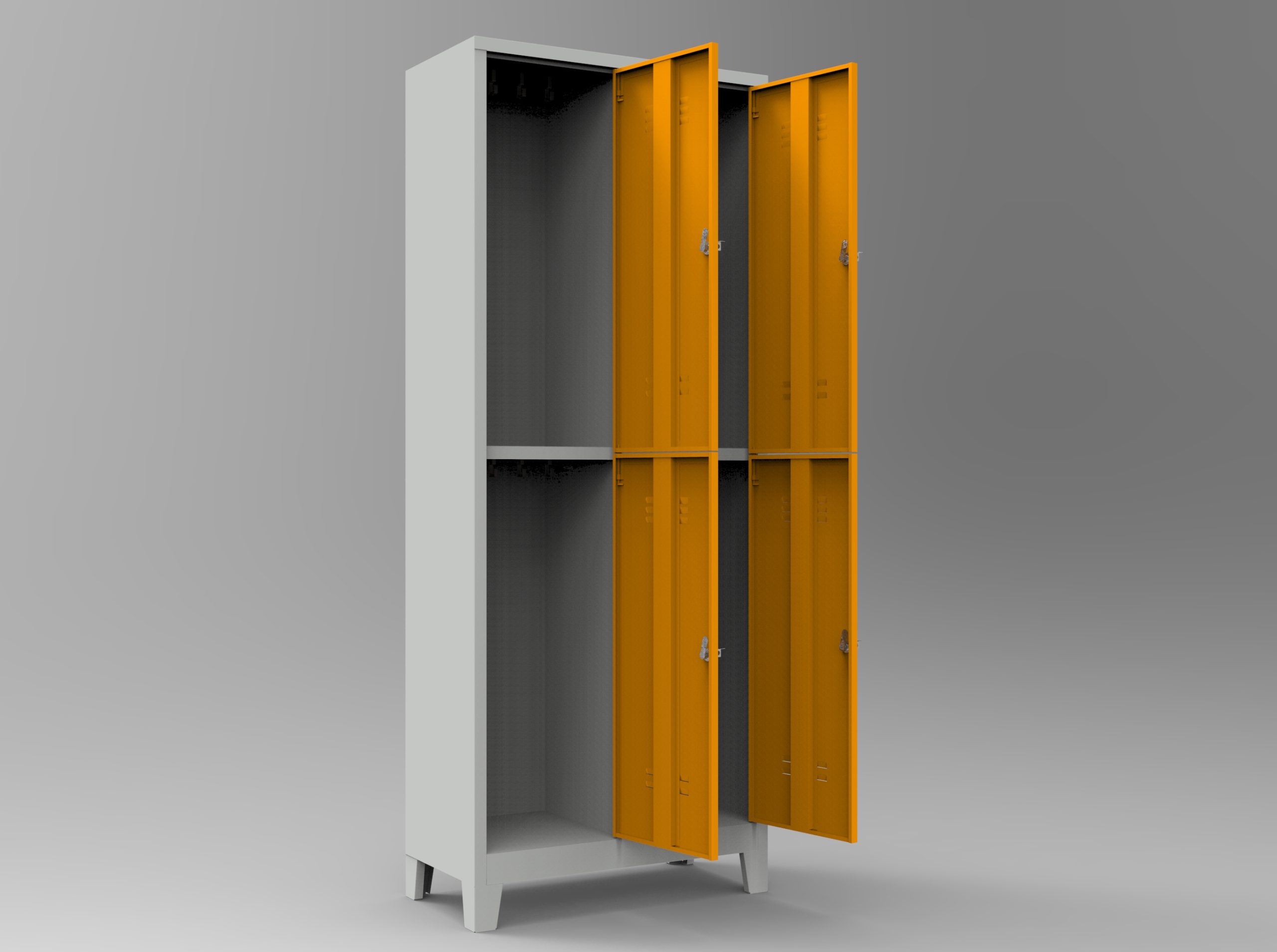 Dörtlü soyunma dolabı, bu dolaplarda gizli menteşe kullanılmaktadır. Soyunma dolabı kapakları 180 derece açılabilir özelliktedir.