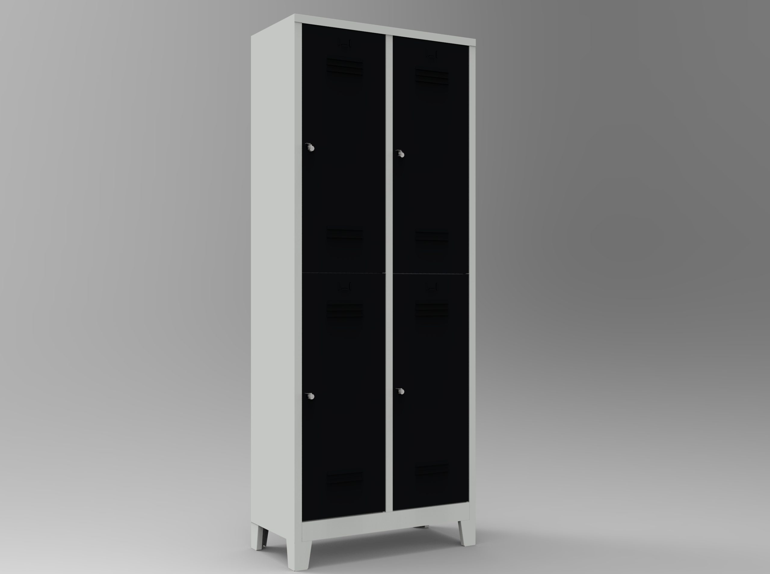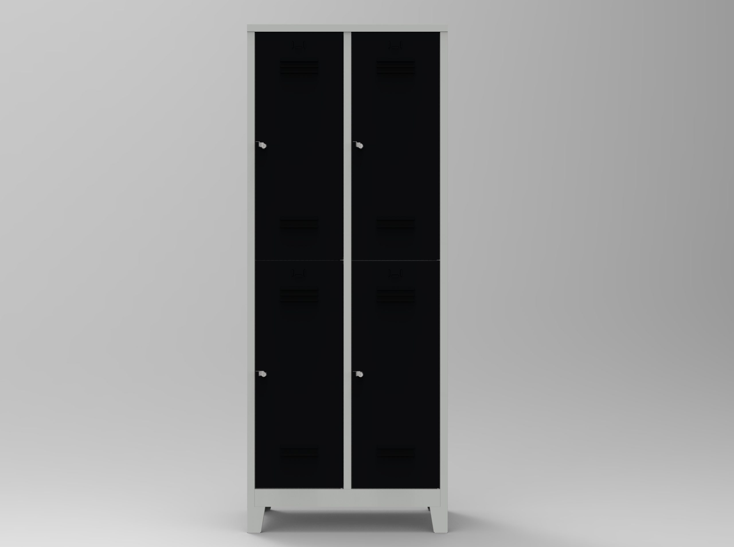 Çelik dörtlü personel soyunma dolabı, gövdesi kaynaklı ve puntalı DKP