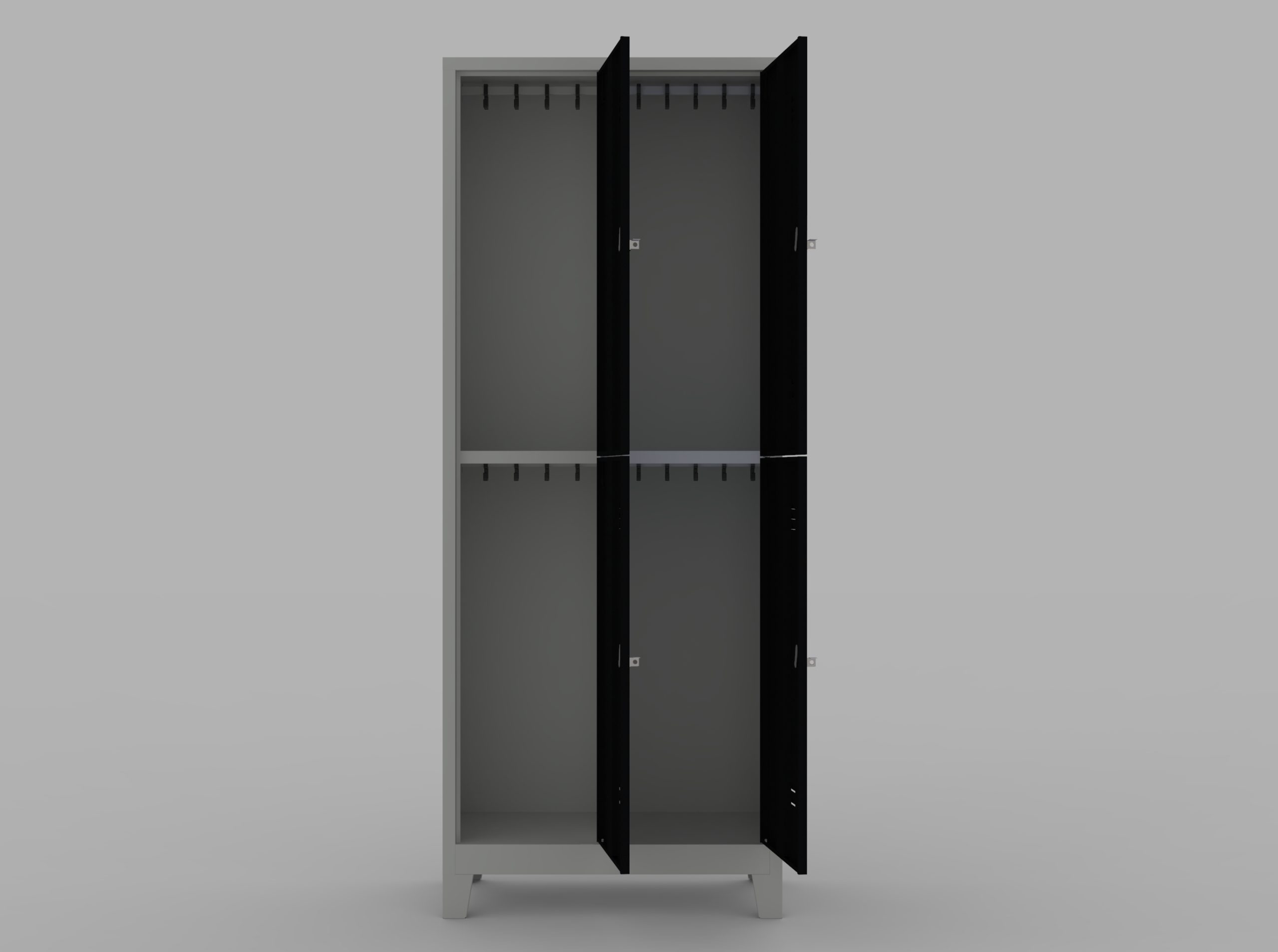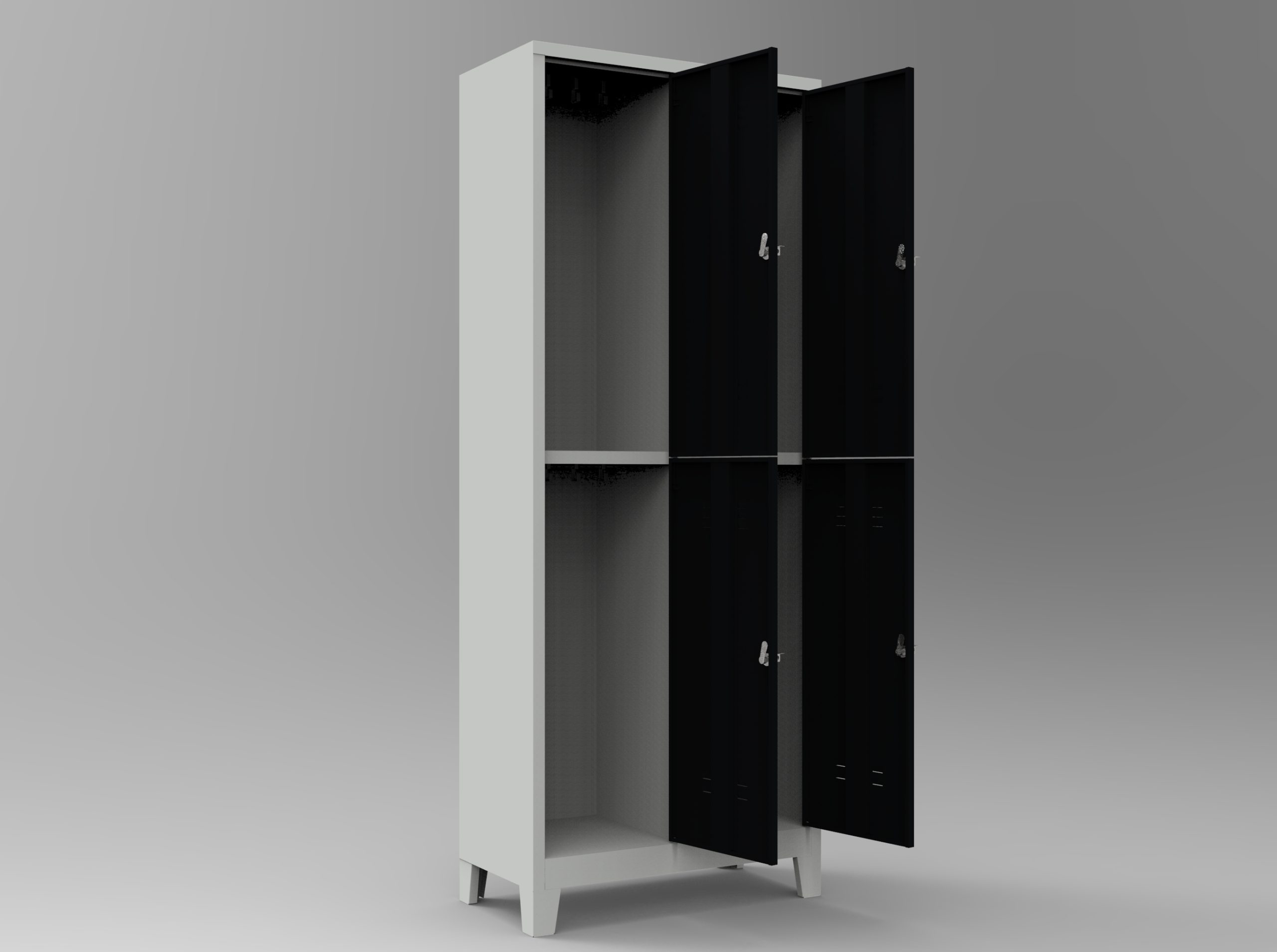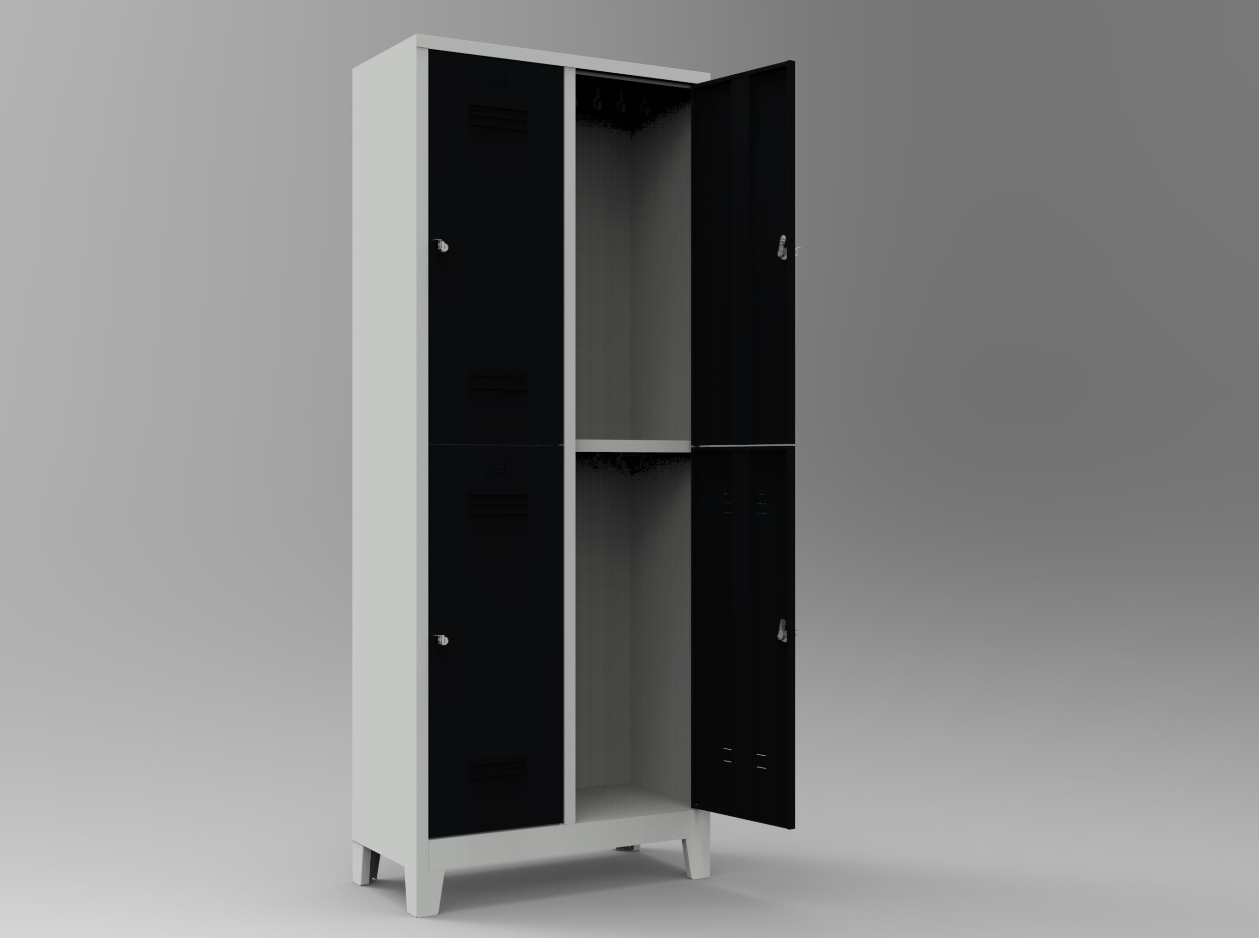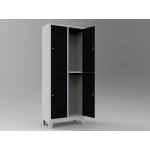 Dörtlü soyunma dolabı, bu dolaplarda gizli menteşe kullanılmaktadır. Soyunma dolabı kapakları 180 derece açılabilir özelliktedir.