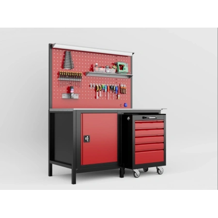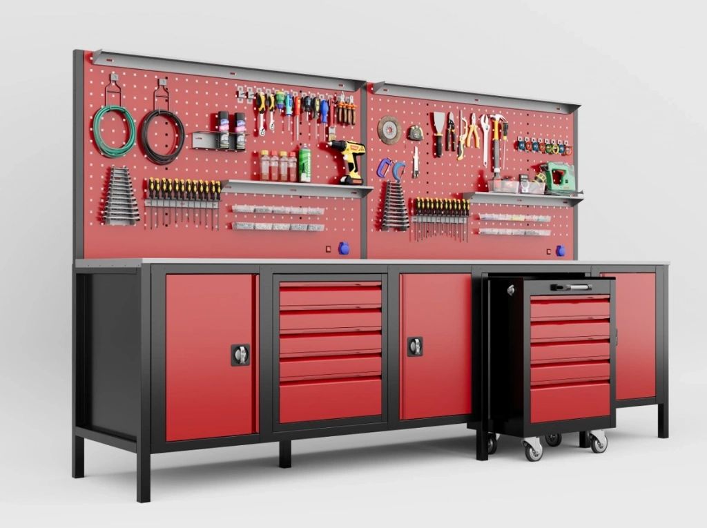 - Entegre Mobil Takım Arabası: Tezgahın altına yerleştirilebilen, tekerlekli ve çekmeceli takım arabası ile aletlerinizi projenizin yanına taşıyın. İhtiyaç duymadığınızda tezgahın altına park ederek alan kazanın.