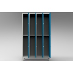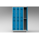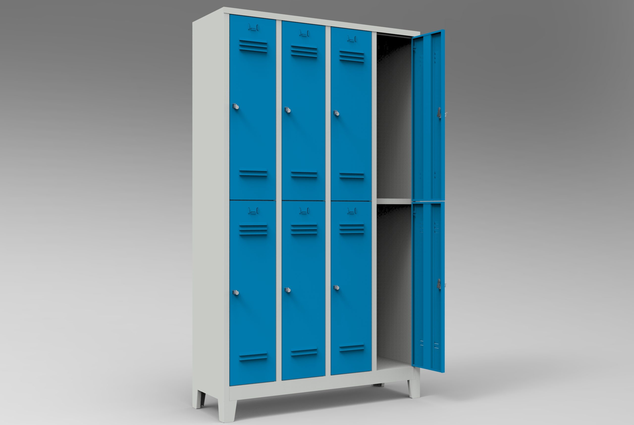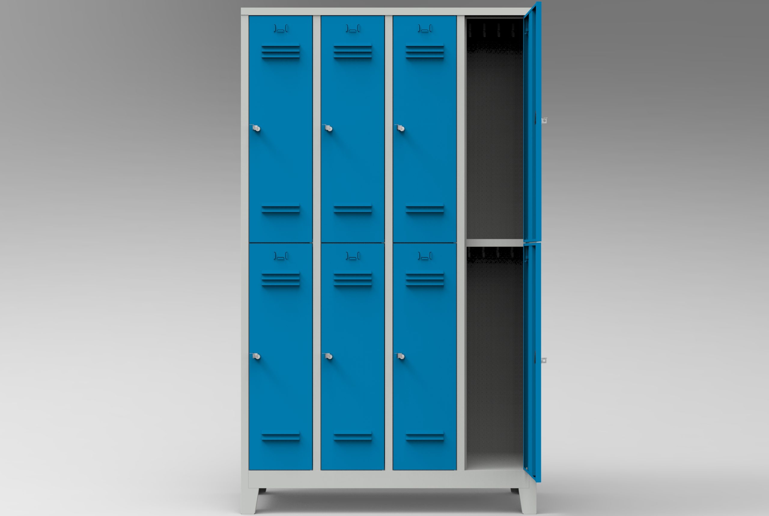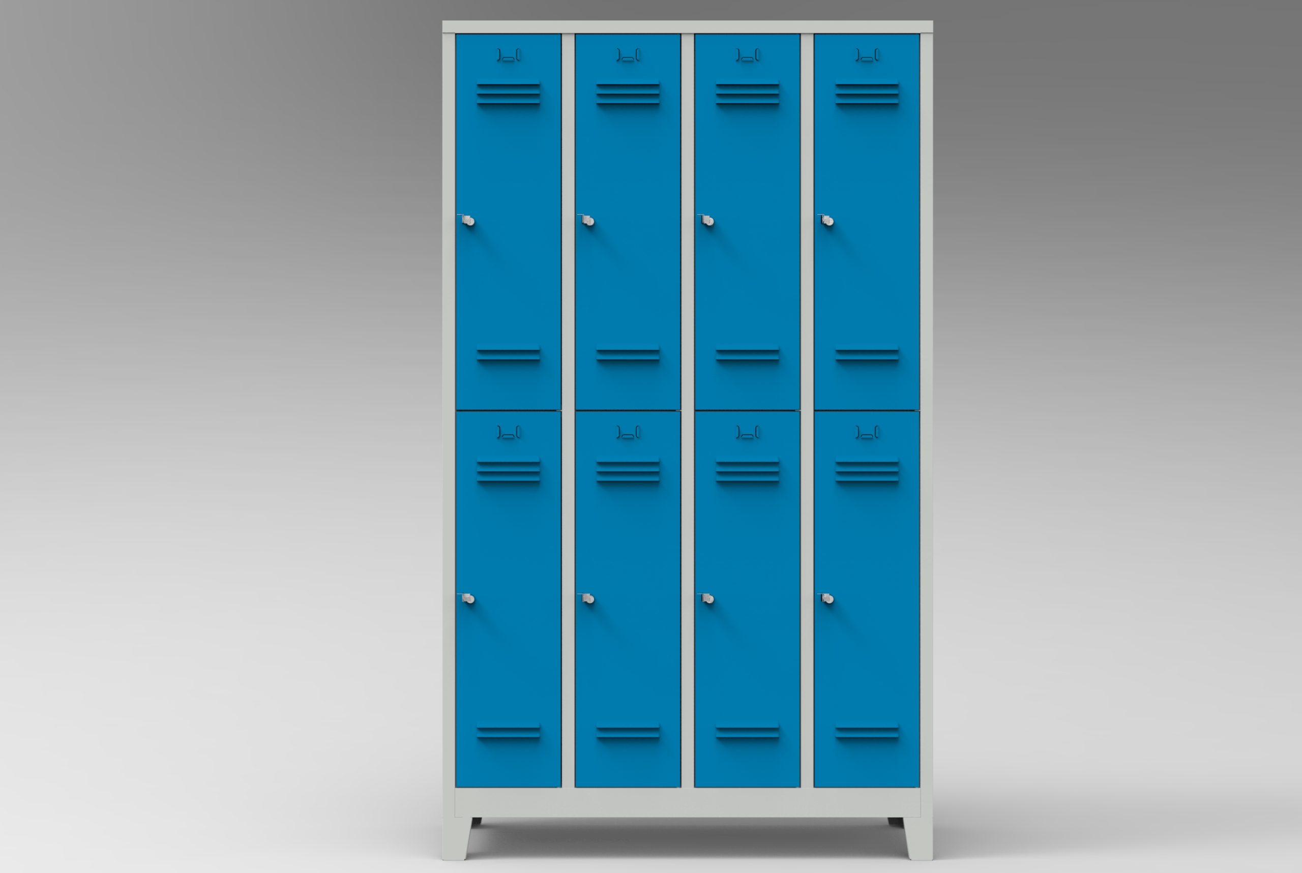 Çelik boydan dörtlü personel soyunma dolabı, gövdesi kaynaklı ve puntalı DKP