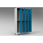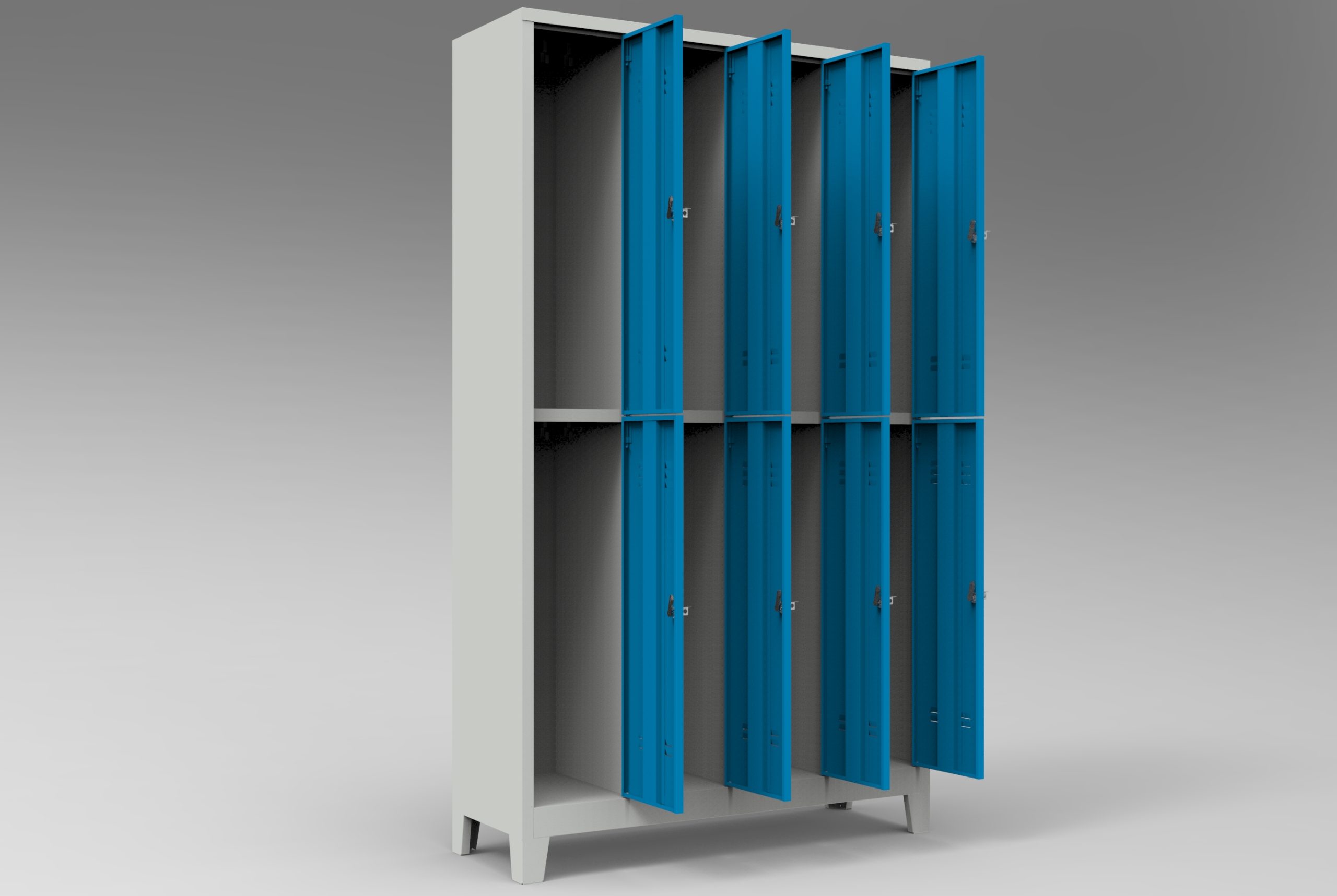 boydan dörtlü soyunma dolabının ayakları üç büküm ile kıvrılıp soyunma dolabının altına sabitlenir.