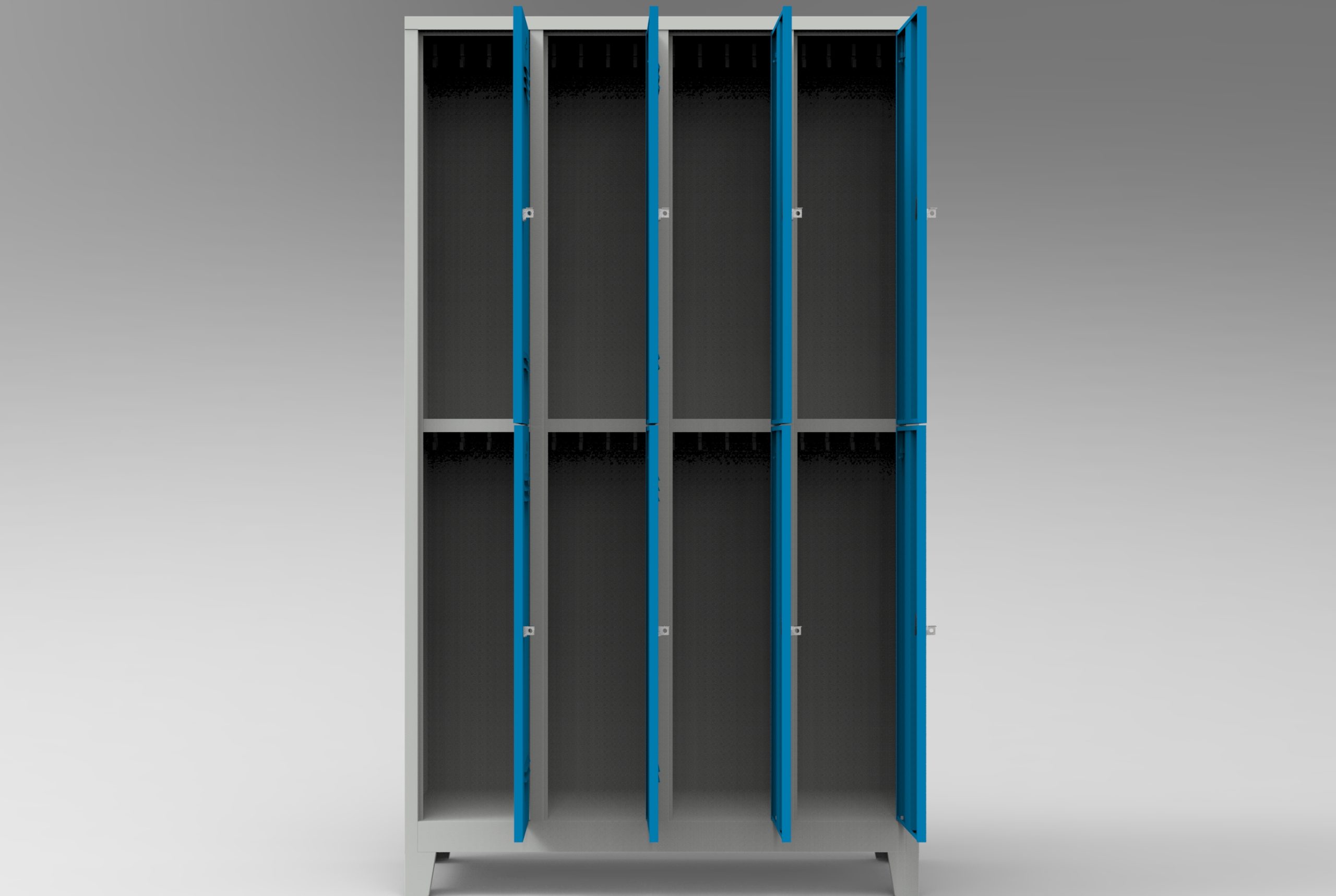 boydan dörtlü soyunma dolabı, bu dolaplarda gizli menteşe kullanılmaktadır. Soyunma dolabı kapakları 180 derece açılabilir özelliktedir.