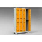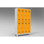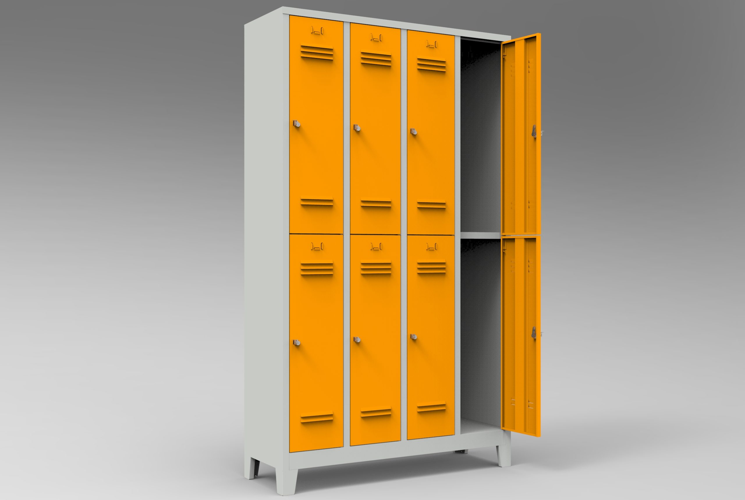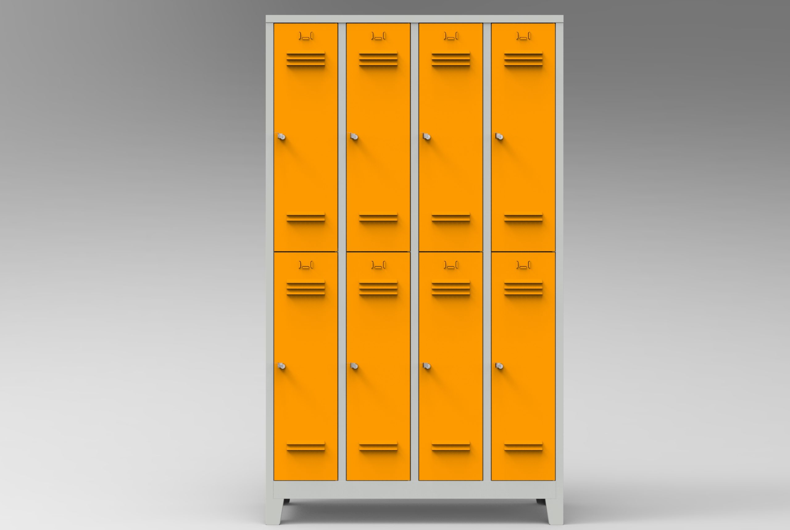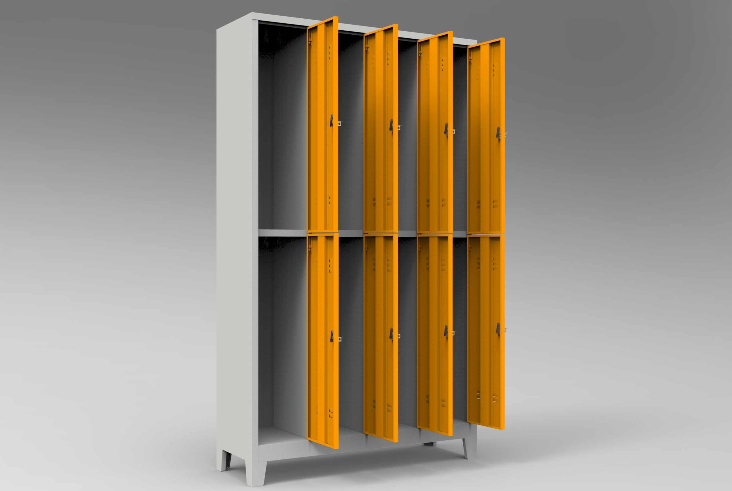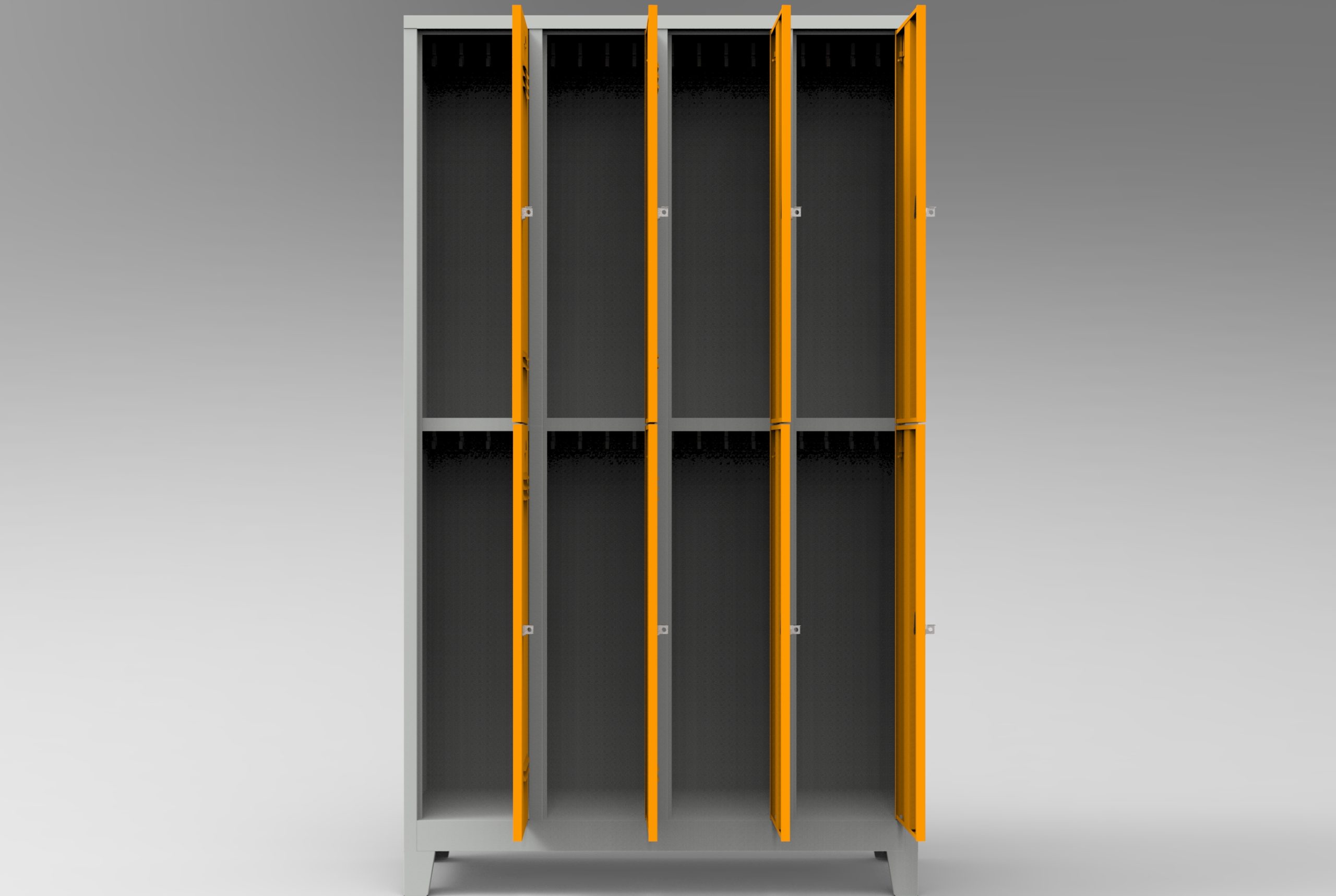Çelik boydan dörtlü personel soyunma dolabı, gövdesi kaynaklı ve puntalı DKP