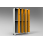 dörtlü soyunma dolabı, üstte bir adet raf; cüzdan, telefon vs. koymak için çelik emanet dolabı ve cep telefonu dolabı