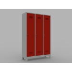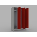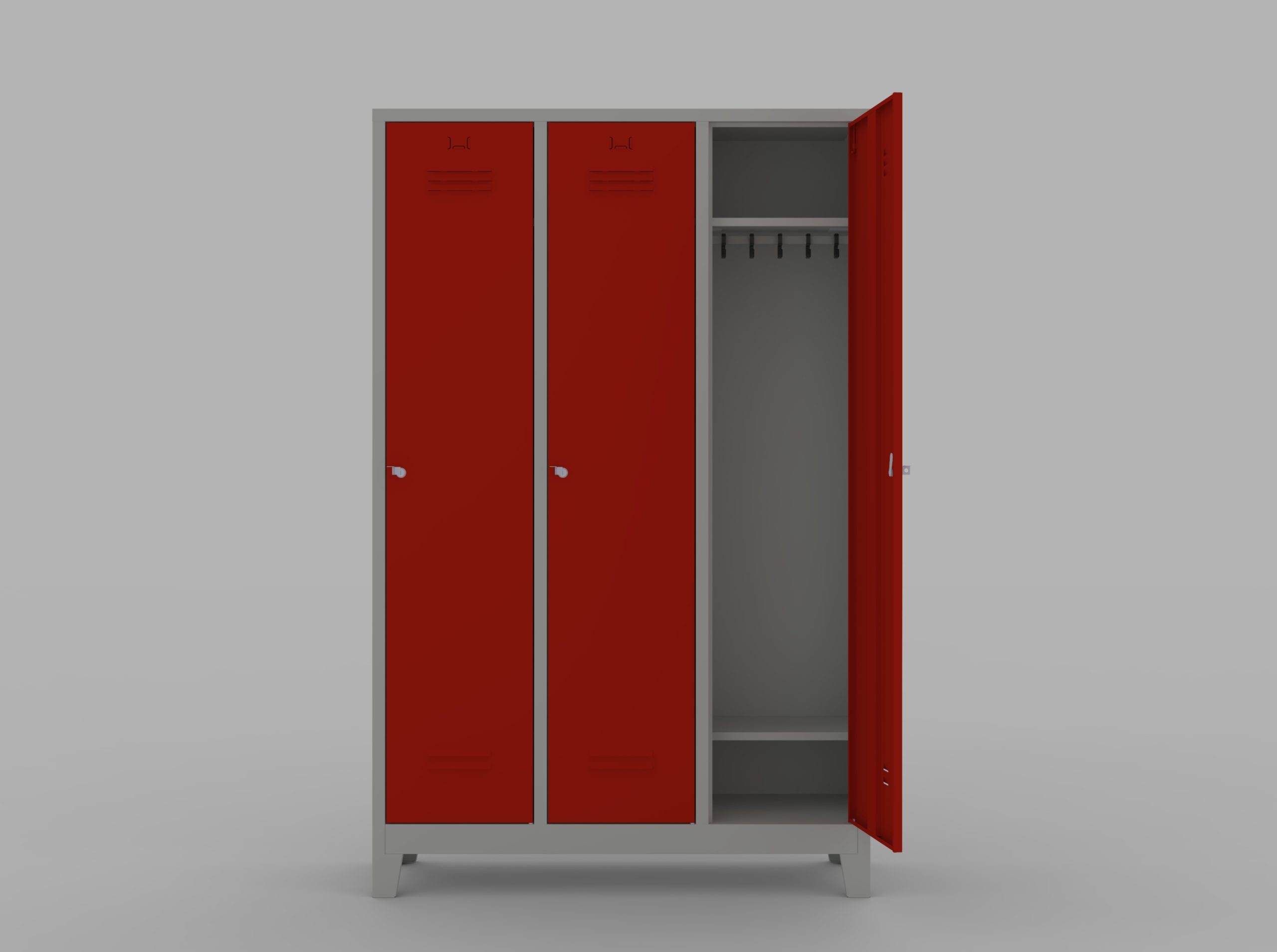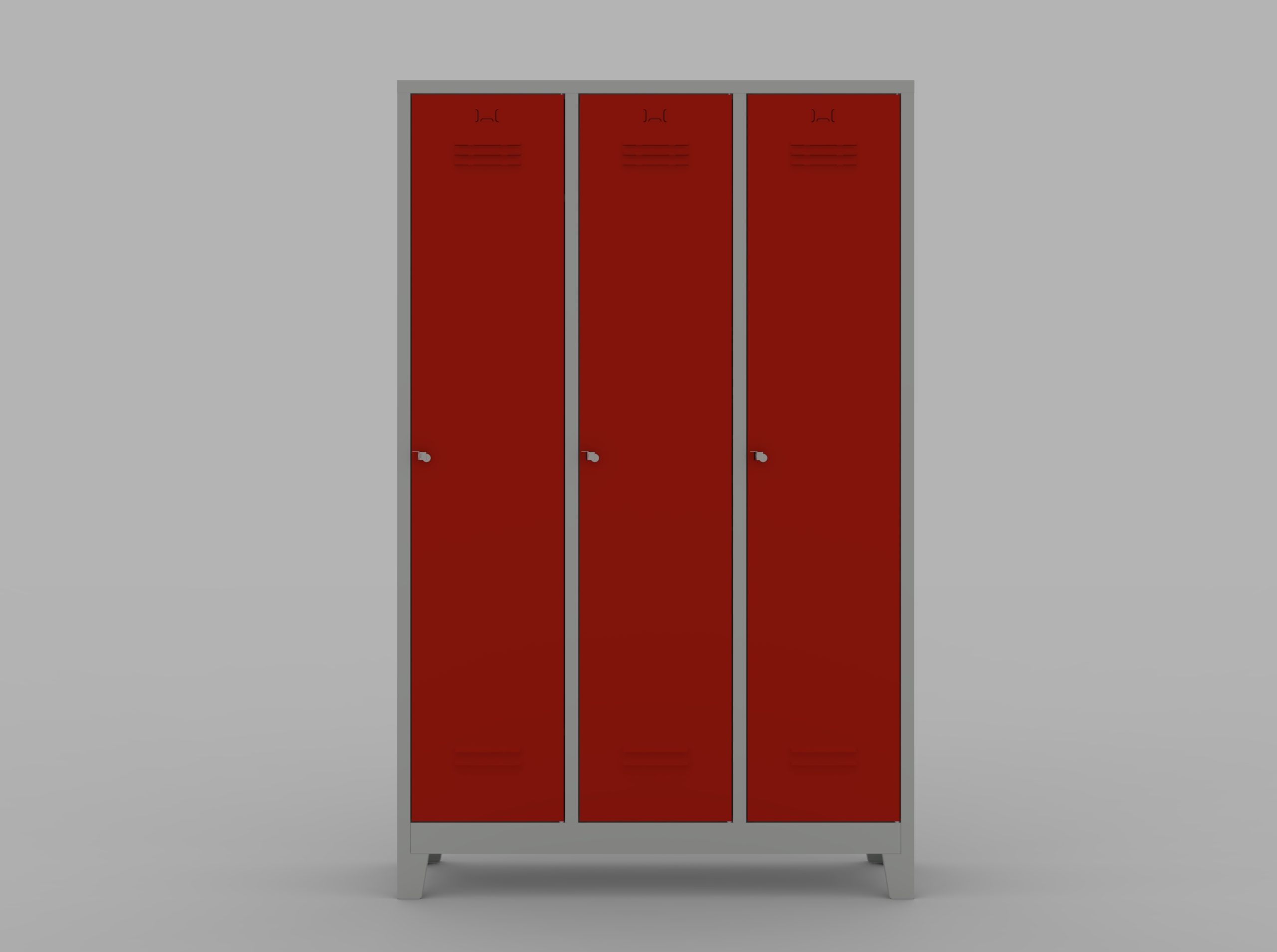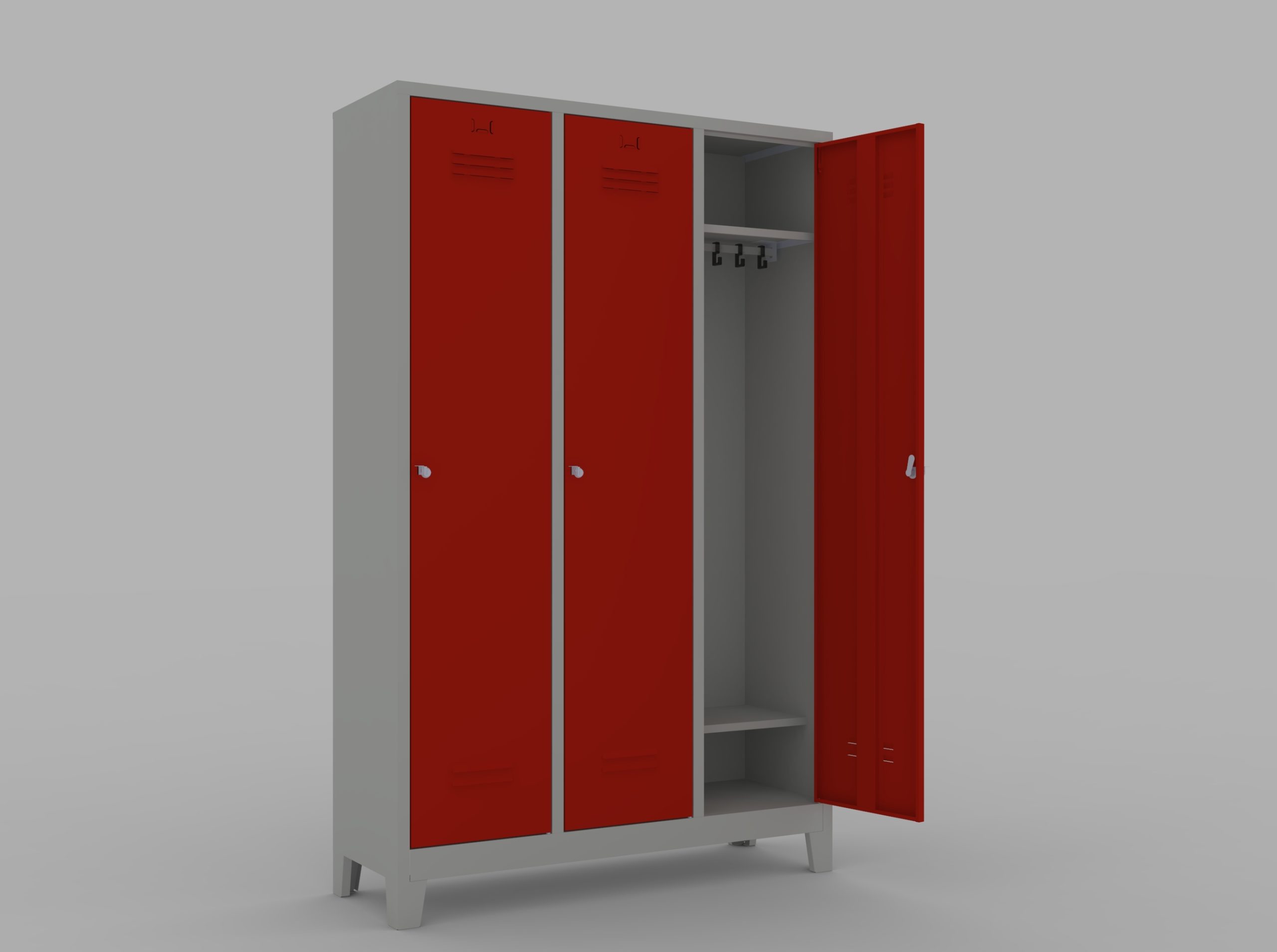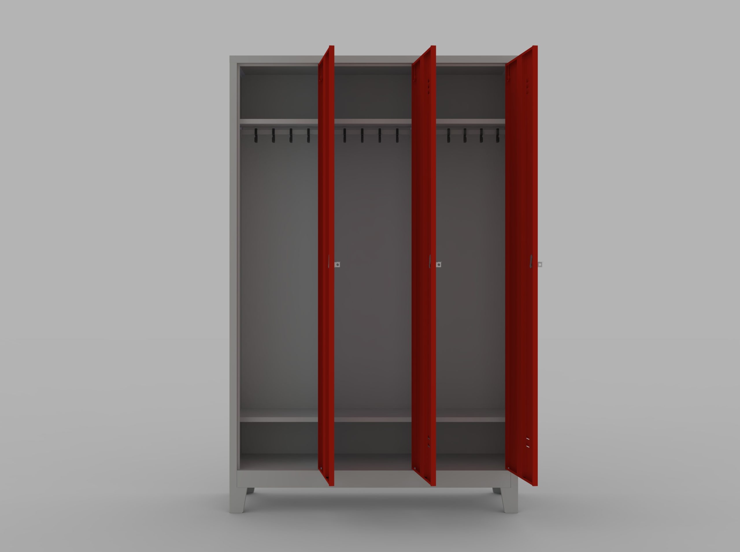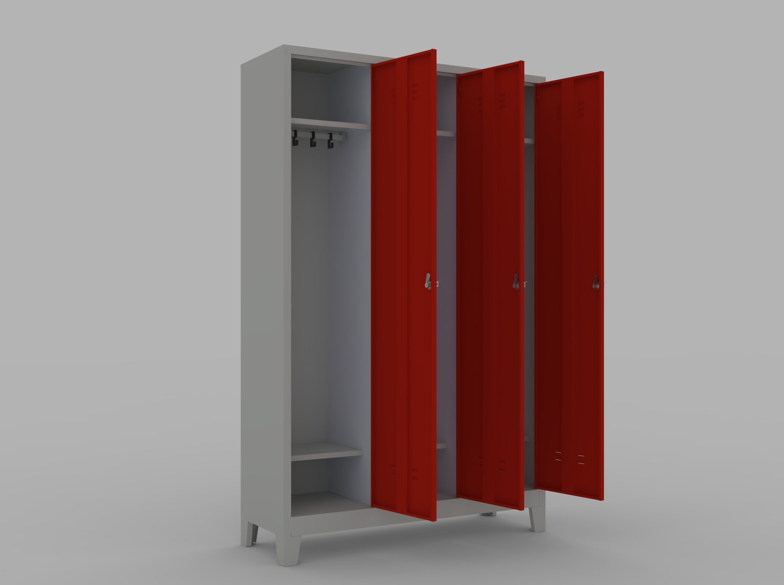 Üçlü soyunma dolabının ayakları üç büküm ile gösterip soyunma dolabının tescilli olarak sabitlenir.