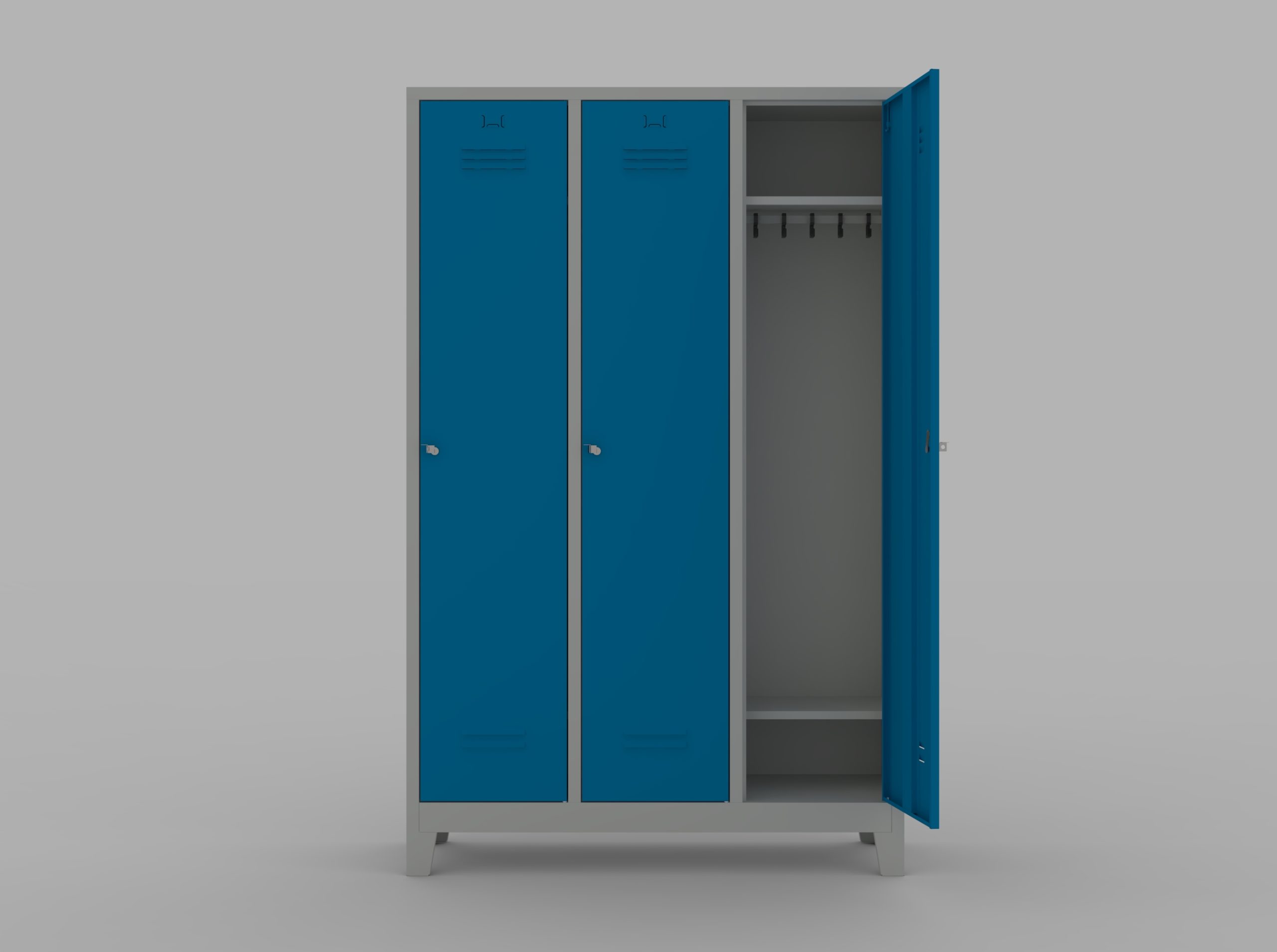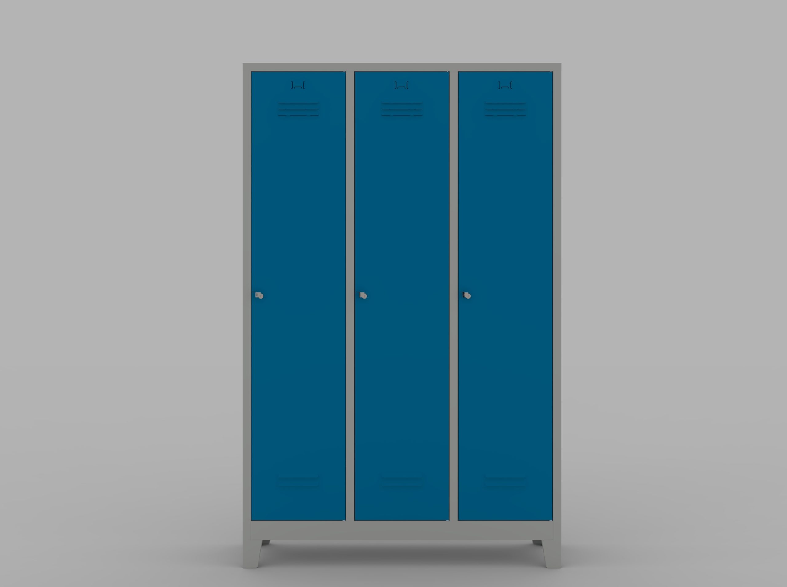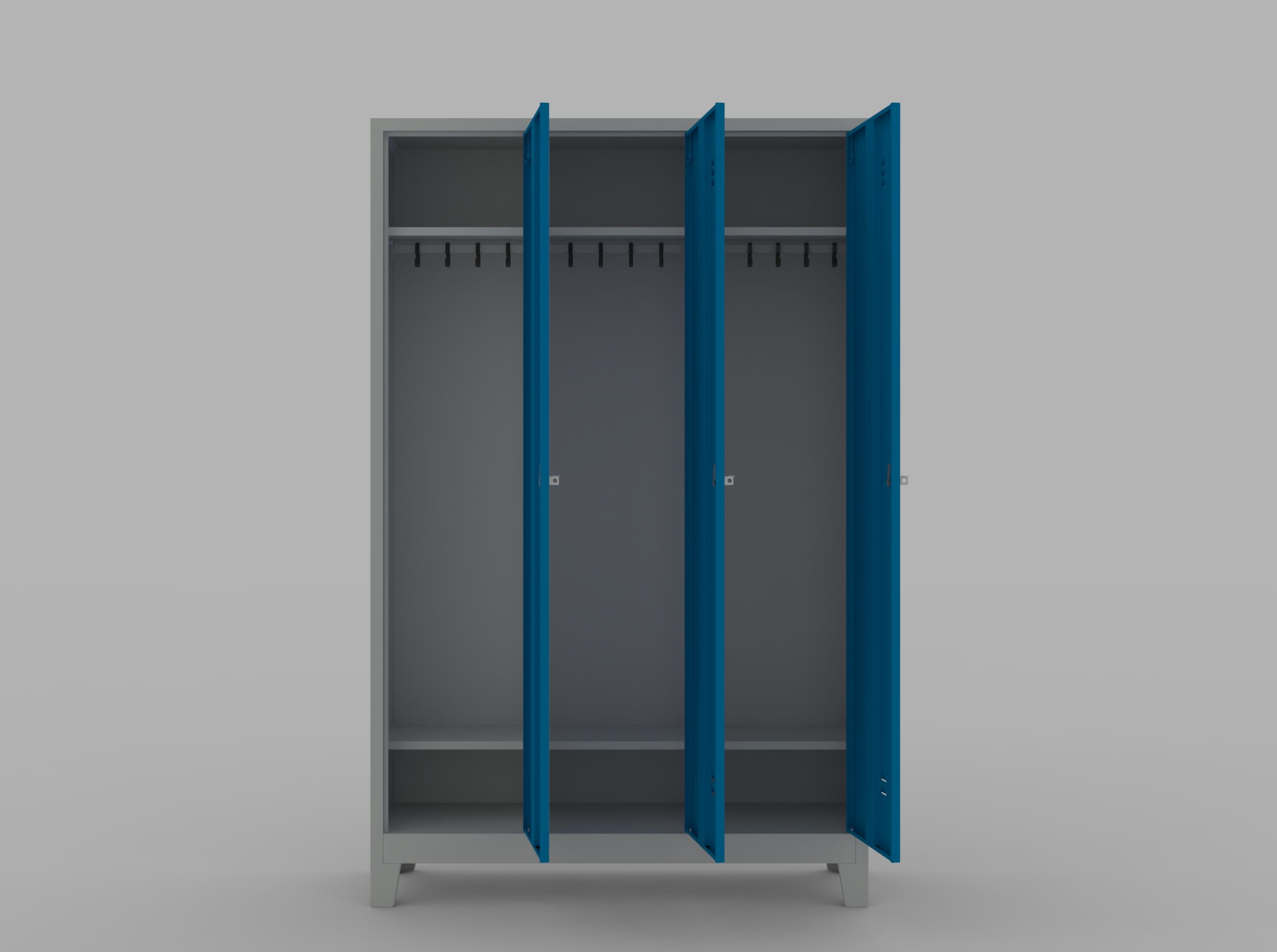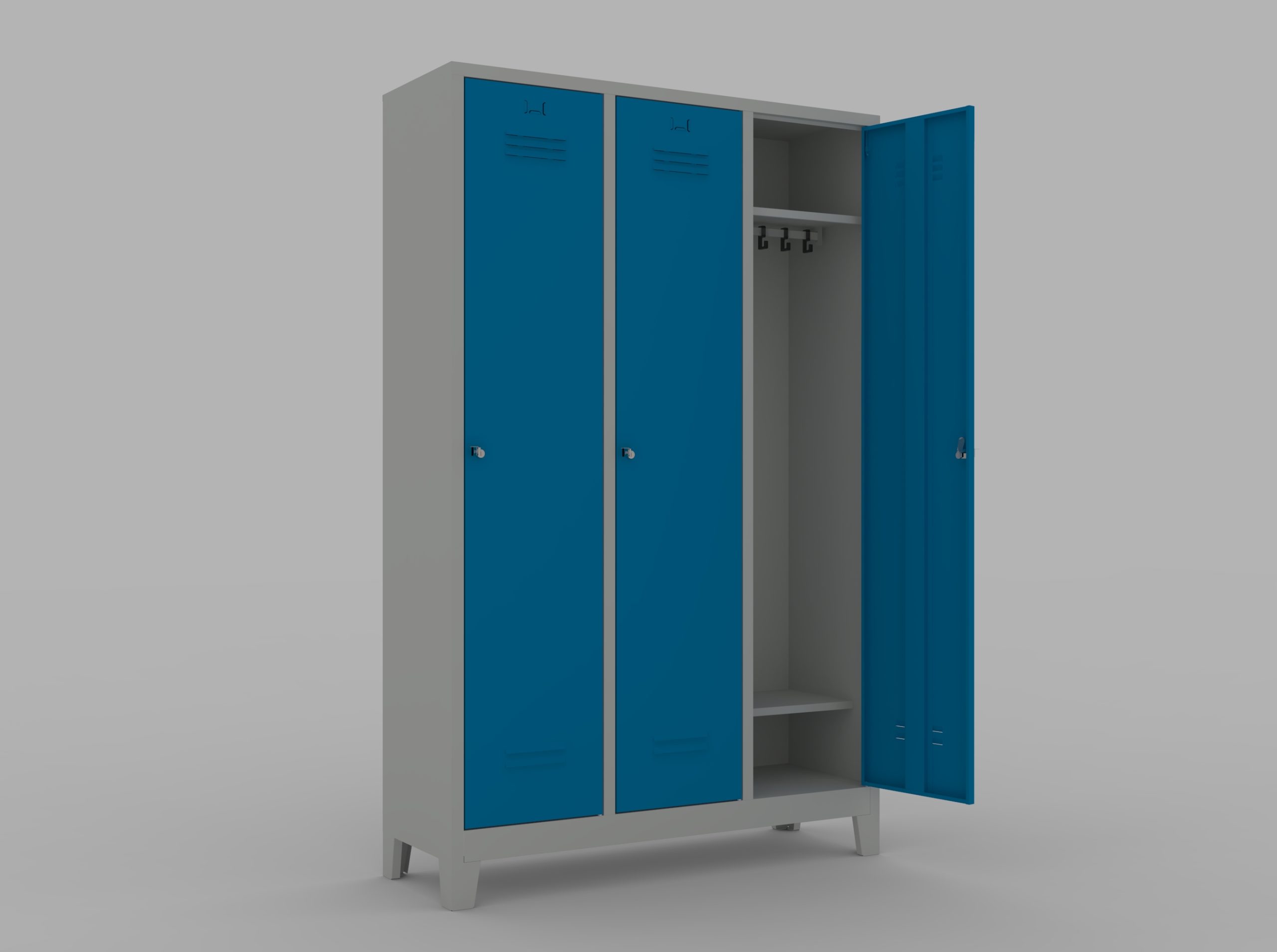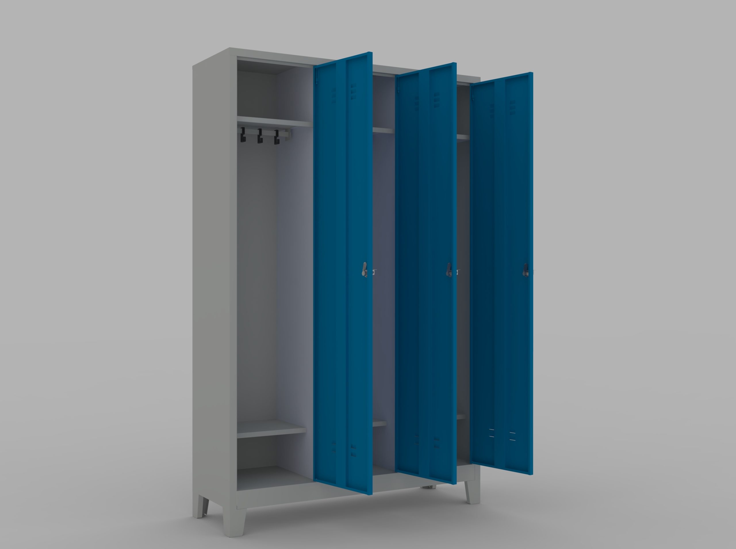 Üçlü soyunma dolabının ayakları üç büküm ile gösterip soyunma dolabının tescilli olarak sabitlenir.