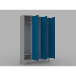 Üçlü soyunma dolabı, bu dolaplarda gizli menteşe kullanılmaktadır. Soyunma dolabı kapakları 180 derece açılabilir özelliktedir.
